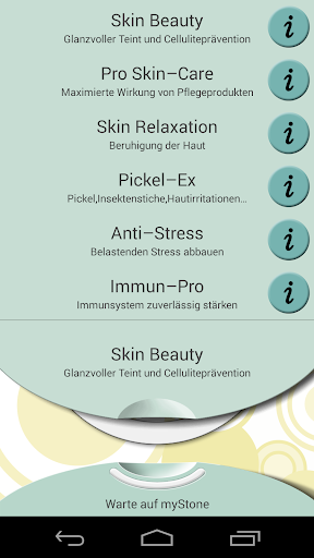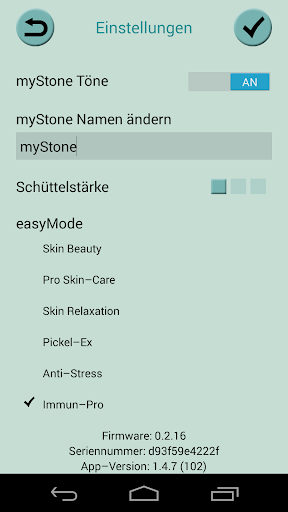 Ứng dụng điều khiển My Stone®, một sản phẩm sáng tạo kích hoạt các quá trình sinh học với sóng có cường độ thấp, kích thích lực lượng của chính cơ thể và hỗ trợ các quá trình vận chuyển trong mô.