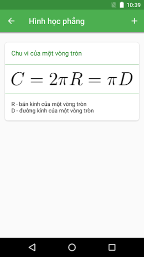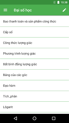 bạn sẽ tìm thấy các công thức đại số, công thức hình học phẳng, công thức hình học, các công thức hình học rắn, công thức lượng giác và nhiều hơn nữa để giúp các sinh viên trẻ học khoa học tuyệt vời và bí ẩn này. Có các công thức toán học cho tất cả các lớp học.