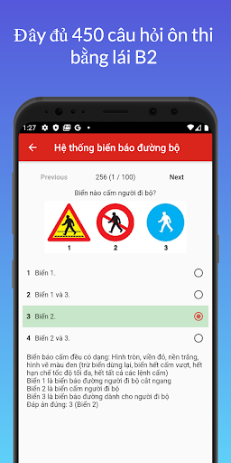* Tổng hợp 450 câu hỏi ôn thi bằng lái B2, ôn thi bằng lái xe cập nhật và đầy đủ. Phần mềm gồm 2 chế độ hoạt động: thử làm các câu hỏi thi giấy phép lái xe và xem giải thích câu trả lời các câu hỏi thi.