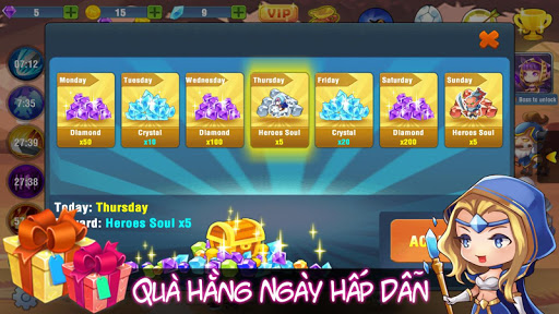 Đồng hành với hiệp sĩ chibi là legend trợ thủ dota có sức mạnh vô song. Đó có thể là kiếm sĩ, cung thủ, thần búa… mỗi người sở hữu năng lực đánh nhau và sẽ hỗ trợ bạn cực tốt trong quá trình đánh boss lớn. Tất cả cùng nhau hợp sức để đánh bại những con quái vật hung dữ nhất và dành được điểm số càng cao càng tốt. Điều này là vô cùng quan trọng cho bạn vì càng thu phục được nhiều tap legend anh hùng khỏe, bạn sẽ càng rảnh tay chống đỡ những quái vật khổng lồ.