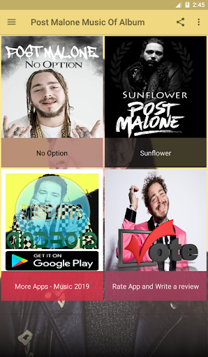 Post Malone Music Of Album là ứng dụng nghe nhạc online hoàn toàn MIỄN PHÍ. Mục đích chúng tôi tạo ra Ứng dụng Post Malone Music Of Album này là đem đến cho người dùng những tính năng tuyệt vời nhất và dễ sử dụng nhất. Ứng dụng của chúng tôi tổng hợp online các bài hát đang thịnh hành nhất, ... để bạn có thể tìm kiếm các bài hát bạn thích nghe