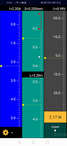 3. Calculation of voltage and power losses for a given current, section and length of the conductor.