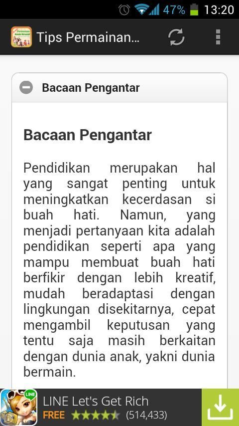 Applications "100 + Kids Games" is an application that serves as a guide to educate the baby with fun. In which there are more than 100 game titles that discuss the equipment used, the exact location to play, how to play, the things that must be considered and the values contained in each game and there are interesting tips about the baby.