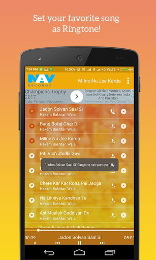 App features songs from various albums like Milne Nu Jee Karda, Baazi Ishqe Di, Tu Jad Turjengi, Riban Gaya Na Kateya, Gairan Sang Jaan Waliye, Bhajdi Truck Dekh Ke, Mele Vich Ditiyan Nishaniyan, Mundri Gawah Sajjna, Shagna Di Chunni, Pyar Vanda Mittra, Raat Da Sharabi, Ajj Kal Da Pyar (Akhada), Mashooq Da Viah, Pataka Agg Warga, Nachiye Nachaiye and many more.