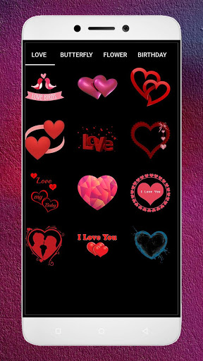 Love Name Art contains love backgrounds, you can add couple names and love stickers.