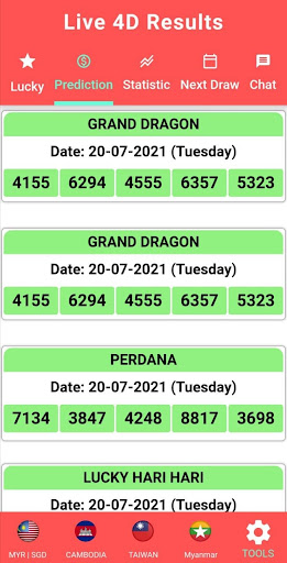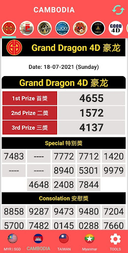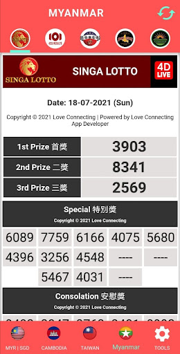 This All 4D Live Results.This apps application DO NOT provide any service to facilitate or even promoting online gambling. This application is simply an application where you can check the latest draw results for the registered and licensed lottery draws available in Malaysia, Singapore, Cambodia, Macao, Taiwan and Myanmar.