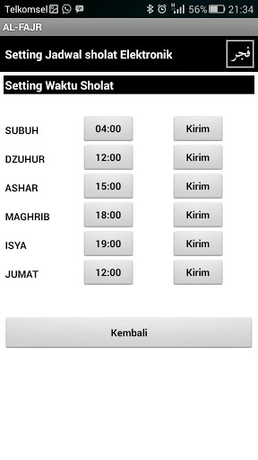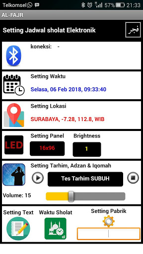 Aplikasi untuk pengaturan (setting) kontroler jadwal sholat elektronik AL-FAJR mennggunakan HP Android melalui bluetooth.