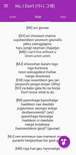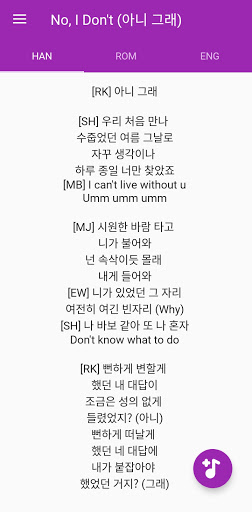 All the lyrics are in Hangul, Romanization, English and also have lines distributions