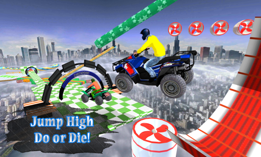 To be the stunt man of four wheeler bike games you have to perform new rooftop bicycle quad stunts. Four wheeler bike games & ATV simulator on mountain top quad bike racing stunt mania is risky 4 wheels bike racing because the off road 4x4 hill climb tracks are narrow and full of challenging obstacles.Enjoy extreme rooftop Four wheeler ATV quad bike games with high speed over smooth but tricky track. Play best 4x4 ATV simulator game in your android device with different racing missions. Driving 4x4 offroad quad bikes is almost impossible for those who cannot control fast speed on crazy heights to complete impossible missions. Crazy ATV Quad Bike Stunts : Quad Bike Racing Game simulator impossible sky tracks ATV stunts is the fastest and most exciting 3d stunts action on mega ramp rooftop tracks for bike racing rider.