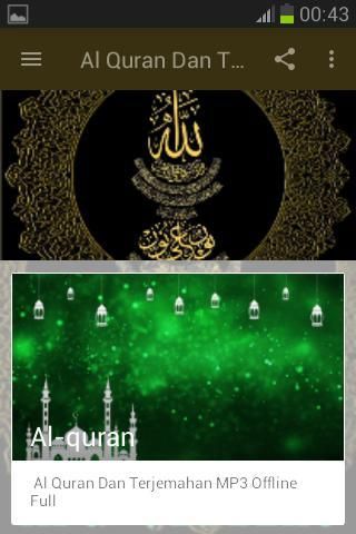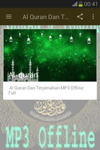 Al Quran Dan Terjemahan MP3 Offline Full lengkap terjemah Indonesia secara offline dan online dengan kualitas audio terbaik dan bahasa indonesia Quran mp3 sangat baik untuk yang sedang belajar membaca Al quran dengan cara mendengarkan Mp3 baik itu offline maupun online