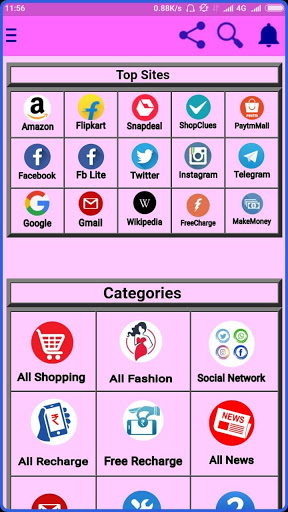 Online shopping app for all the online visitors of all over the world. This app has been designed focusing on giving you one place for all your Favorite sites and giving you a better user experience with the smallest size running in all normal phones. Save up to 90% Of memory on your phone.
