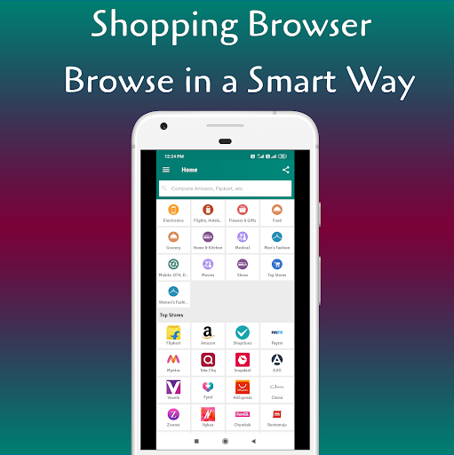 - Search multiple online shopping stores in one shot with Single Search box Shopping Browser App
