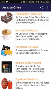 The App is about Special Offers, deals and discounts on Amazon Online Shopping Products. The App has a List view of all best available offers on amazon with its brief detail.