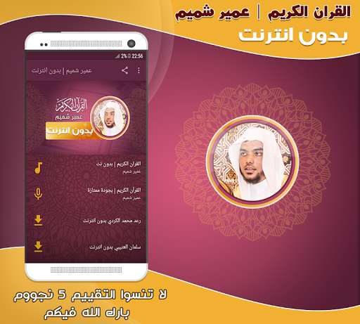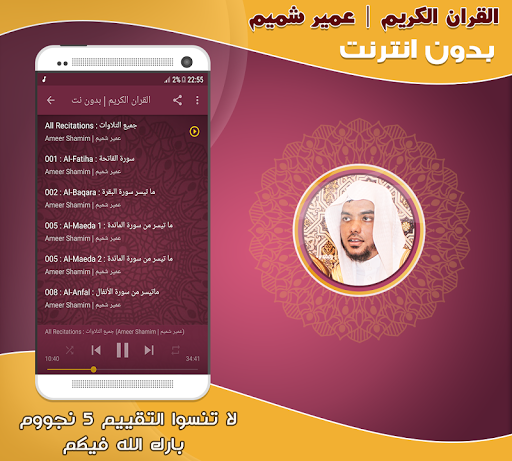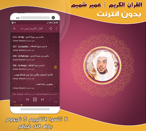 تحديث جديد رائع ------------------ قران كريم بصوت عمير شميم بدون نت