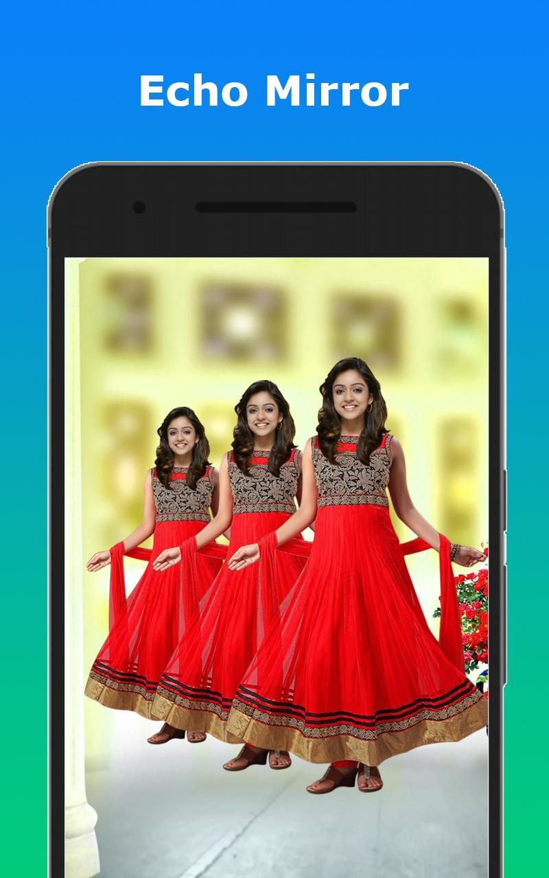 This Anarkali Dress Photo Suit has flip option which you can apply on your pictures and stickers. The final image can be saved and set as a wall paper of your device.