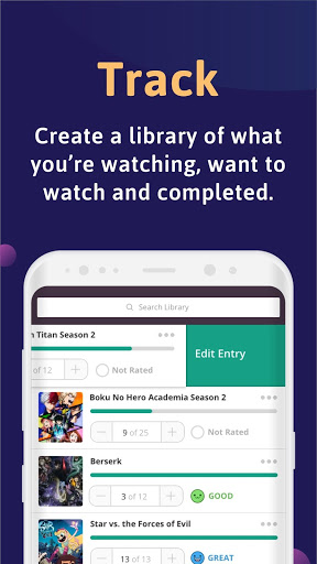 • Curate your library of anime you’re watching, want to watch and completed.