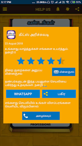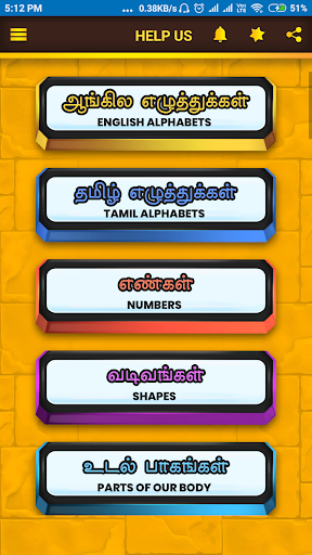 Our Arichuvadi App helps you to learn two more languages with voice control. 50 more categories with colorful images to attractive play options. Using scroll option to select your favour learning category and lets start to learn. Arichuvadi contains best collection of learn subjects were easy to observe by the colorful images.