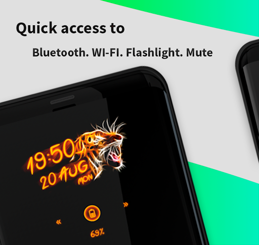 — Is an app which is showing time, date, day of the week when your screen is off and locked. You don’t need unlock the screen every time to check what time it is. Also you can on/off Flashlight, Bluetooth, Wi-Fi, mute at the lock screen. This app has an exclusive themes. All themes are free!