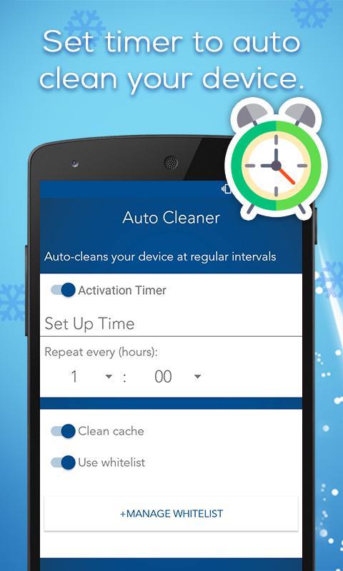 You can set your own time interval in the app and the app will auto perform clean and boost process to faster your phone's performance.