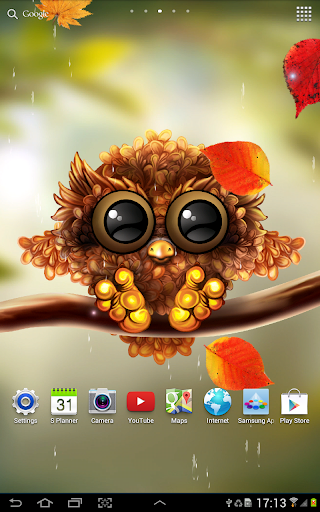 How to set this autumn wallpaper with little owl on the screen of your phone: Home → Applications → Settings → Display → Wallpapers → Home screen wallpaper → Live wallpapers →