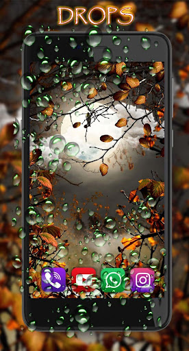 The application Autumn Moon Live Wallpaper realizes the realistic effect of water droplets on the glass. Drops of water or dew flow down the phone's glass. When you touch your finger, the drops realistically fly apart.