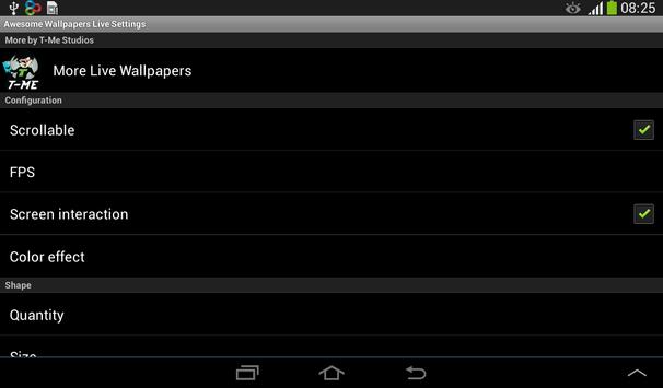 You can increase the size, speed or density of the elements, as well as select three different color effects and three different color intensities. To customize it, open the app, click on "Set Live Wallpaper" and then click on "Settings"