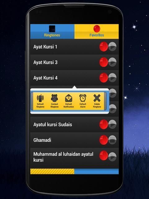 2. Bisa kamu pilih dan setting ayat kursi audio mp3 sebagai Ringtone contact panggilan, Nada Dering SMS/Pesan, Nada Dering Notifikasi Serta Juga Nada Dering Alarm.