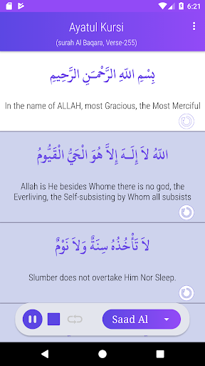 Ayatul Kursi Audio app is a free app where you can learn Ayatul Kursi from reputed reciter. Ayatul Kursi is an Ayah of Surah Al-Baqarah (verse255). Our Prophet Muhammad (SM) said it is the most important Ayah in the Quran.