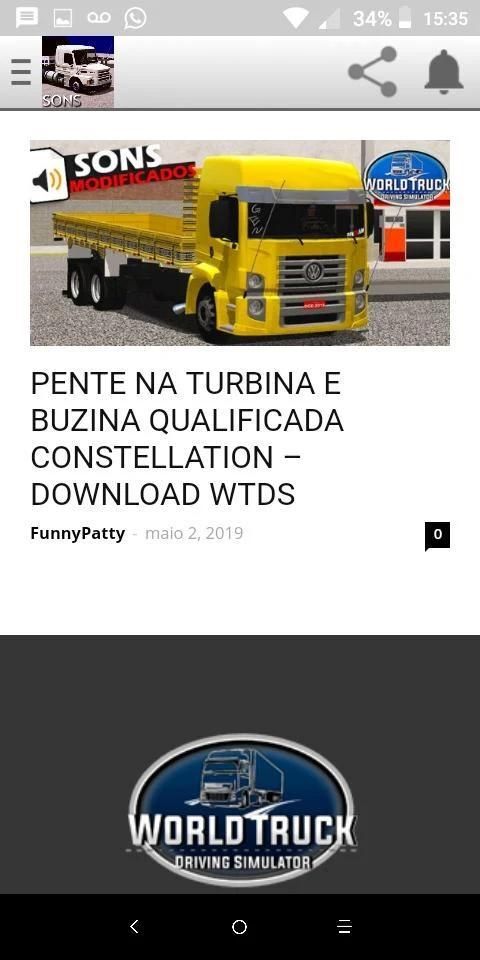 Baixe sons neste aplicativo para o jogo world truck driving simulator, encontre sons de pente na turbina, partida de motor, freio motor e buzinas.
