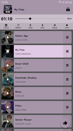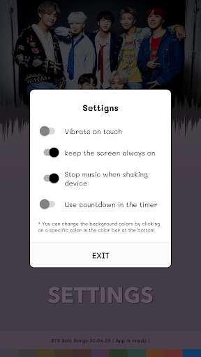 You can play many songs from favorite BTS SOLO (Bulletproof Boy Scouts) singers. This application is very easy to use.