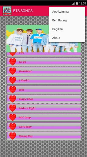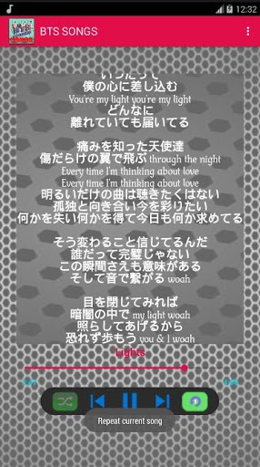 BTS song's application comes with lyrics in each song and this application can run OFFLINE (without the need for internet), is displayed interactively with clear images that make it easier for users, presented for FREE and can be saved in EXTERNAL MEMORY.