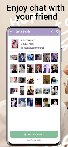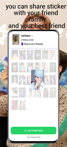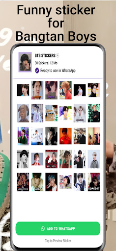 Unofficial product. This is only the responsibility of the developer. This is WhatsApp Inc.'s support or affiliation. WhatsApp Messenger, names, trademarks and other registered trademarks and are the property of their respective owners. This BTS WAStickerApps made from BTS Fans.
