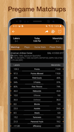 * Includes pre-game matchup stats and live team & player boxscore stats!