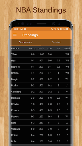 * View team standings by division or conference.