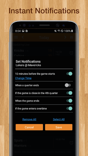 Quickly check NBA game-day scores and the full basketball schedule! Live updates keep you on top of all the current NBA matches. Easily view previous game results and set an alarm for future matchups. View local & national TV and radio listings. Fully customizable, check the entire basketball league or just your favorite teams!