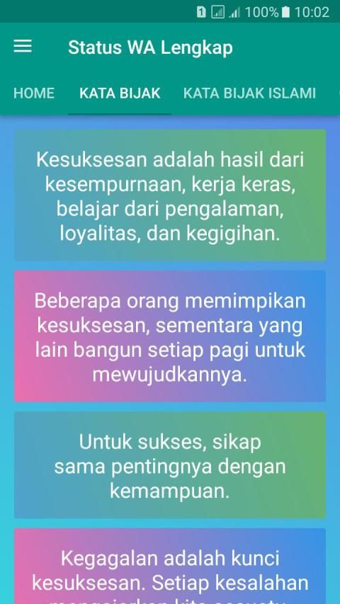 Aplikasi ini adalah aplikasi status WA keren disertai lebih dari 10000 status whatsapp yang sudah kami pilih hanya untuk anda.