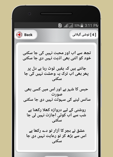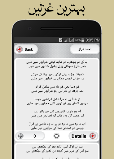 یہ ایپ آف لائن اورآن لائن دونوں طرح سے کام کرتی ہے اور آپ کو بہترین غزل کولیکشن فراہم کرتی ہے
