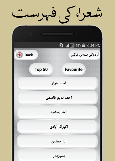 ✔️Ahmad Faraz ✔️Ahmad Nadeem Qasmi ✔️Aitbar Sajid ✔️Akbar Ilabadi ✔️Ada Jafri ✔️Bashir Badar ✔️Bahadur Shah Zafar ✔️Parveen Shakir ✔️Jigar Muradabadi ✔️Jaun Elia ✔️Hasrat Mohani ✔️Zahra Nigah ✔️Sahir Ludhiyanvi ✔️Saleem Kousar ✔️Zafar Iqbal ✔️Allama Muhammad Iqbal ✔️Faiz Ahmad Faiz ✔️Firq Gorakhpuri ✔️Kishwar Naheed ✔️Gulzar ✔️Mirza Asad Ullah Galib ✔️Munir Niazi ✔️Mir Taqi Mir ✔️Noshi Gillani ✔️Nasir Kazmi