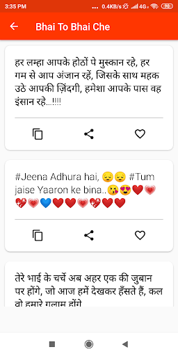 - Contains all types of shayari like love, brother, bhaiya, sister, dosti, friends and many more.