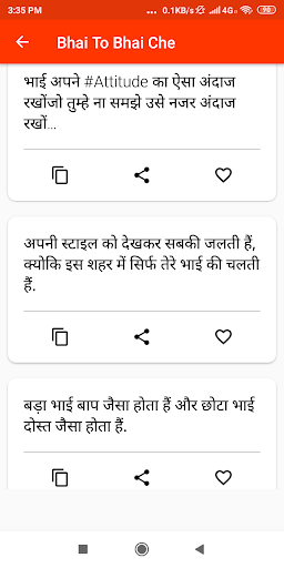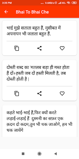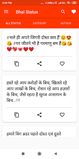 Bhai to bhai che status android app come with quality based dosti status which having top listed in 2019 year. Every status collection are very good meaning and all occasions to use like when you post on any social media copy the status and get likes.