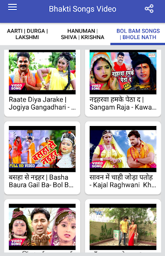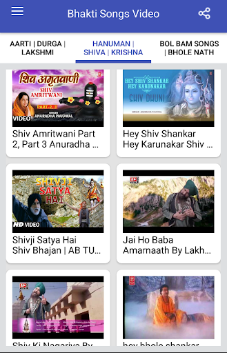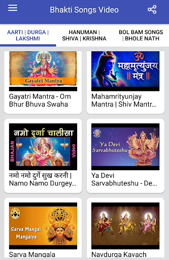 This App Bhakti Songs : Aarti, Bhajan, Mantra, Janmashtami Song has different categories of video songs like Aarti, Maa Durga Songs, Maa Laxmi Songs, Hanuman Songs, Hanuman Chalisa, Bhole Baba Songs, Bhole Baba Bhajan, Krishna Bhajan, Krishna Songs & Bol Bam Songs with a best & very user friendly interface. This application also allows you to share these videos on social media like WhatsApp, Facebook, Message, Email, Bluetooth and many more.