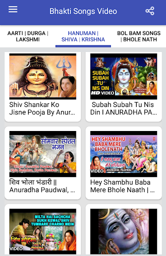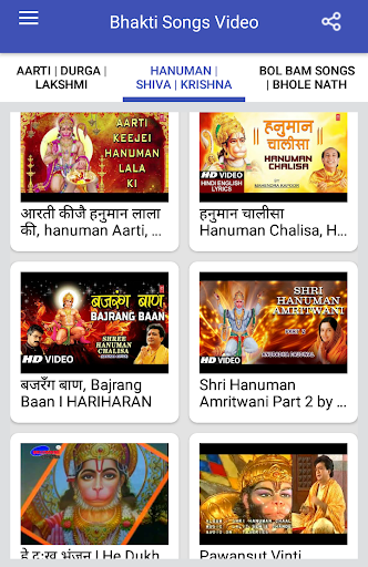Bhakti Songs : Aarti, Bhajan, Mantra, Bol Bam Songs application has largest collection all category videos like Devotional Songs, Mata Ke Bhajan, Top Bhakti Songs, Hindi Bhakti Songs, Hanuman Bhajan, Goddess Durga Bhajans, Aartiyaan, Gayatri Mantra, Lord Ram, Lord Krishna, Maa Durga Ambe, Bajrangbali Hanuman, Ganesh, Shiva, Dhuni Mantra, krishna bhajan, aarti songs, bhakti songs hindi, mata bhajan, shri krishna bhajan, hindi bhajan song, video bhajan, new bhajan, bhajan of krishna, hindi devotional songs, mata ji ke bhajan, hindi bhajan video, durga chalisa, Shiv Chalisa, Hanuman Chalisa, Lakshmi Chalisa, devotional songs, hanuman chalisa in hindi, devi bhajan, maa durga bhajan, durga mata songs, hindi bhajan lyrics, Bhakti Sagar, Aarti Sangrah, Bhajan, Mantra, Chalisa Sangrah, Navaratri Songs, Janmashtami Songs and many more.