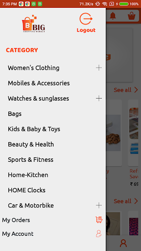 Big Shopping market Online shopping is very easy as you get to shop from the comfort of your home and get products delivered at your home door. Downloading the Big Shopping market free online shopping application on your Android phone or tablet, you can buy from multiple categories including food and women ware, home and kitchen, beverages, mobile phones, fashion wear, electronic devices, and much more products in best price.