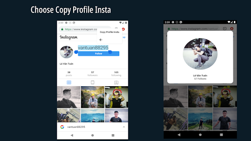*Or open instagram, and click copy profile or copy share URL of anyone.(from android 10, click share with... or copy with... to get profile)