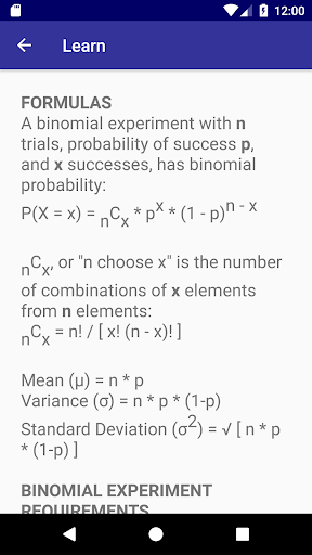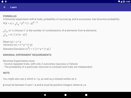 You can also view all formulas and learn about binomial experiments. Great for school!