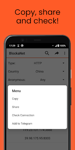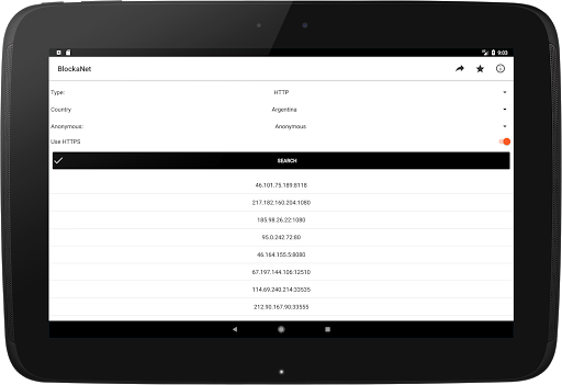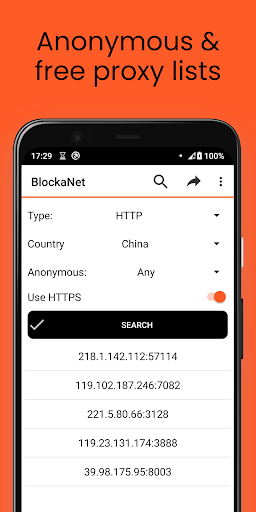 BlockaNet: Proxy List is an application that allows you to visit sites blocked by the provider and protect your IP address when using smartphones on the Android platform. It is distributed free of charge and does not require special knowledge to use. Users can use anonymous proxies any time they need to secure their Internet connection or increase the security of their connection.