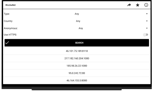 Please note: BlockaNet: Proxy list are strong filters that increase the security of connections. Your traffic cannot be decrypted by the owner of a corporate network or public wireless connection. The application can be used to encrypt and cache information, as well as a web filter.
