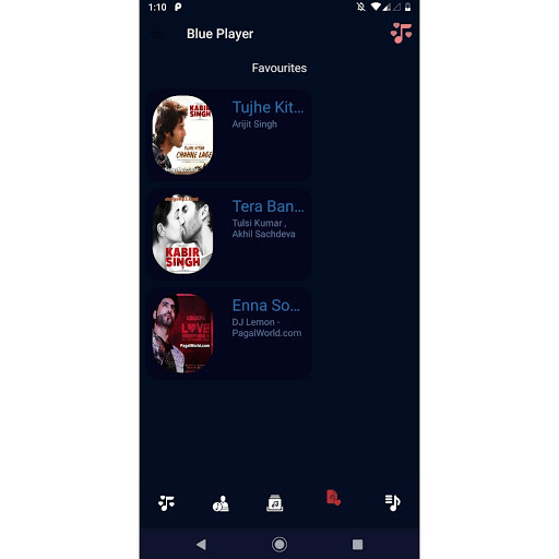 with categories like Playlist, Album, Artist, Favourites, Recents, etc