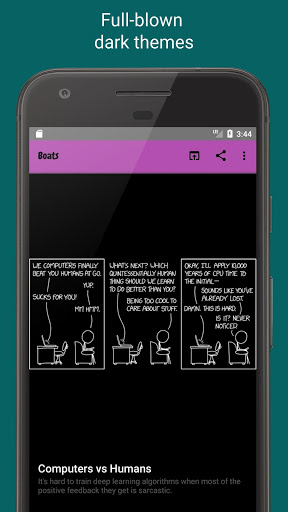 Boats is the best comic reader app there is for Android. Download Boats today and start reading xkcd for free with our awesome comic viewer. Enjoy!