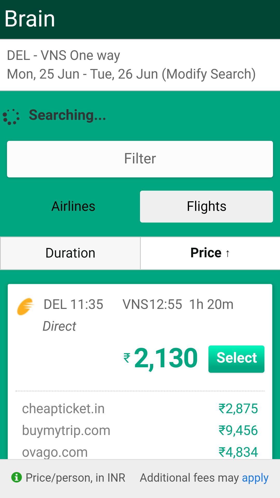 * Compare flight ticket fares across leading airlines & travel websites such as MakeMyTrip, Goibibo, Cleartrip, Yatra, Musafir, Cheap Ticket, Ease My Trip, Booking.com, Expedia and many more.